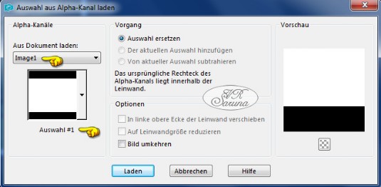 Menü Auswahl -> Auswahl laden/ speichern -> Auswahl aus Alphakanal laden
