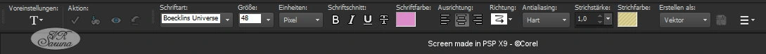 Textwerkzeug (T) mit Einstellungen wie Screen